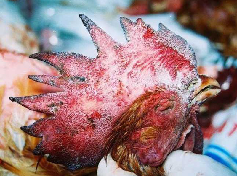 - Chấn thương đầu: Trong trường hợp nghiêm trọng, gà có thể bị chấn thương đầu và có dấu hiệu co giật.